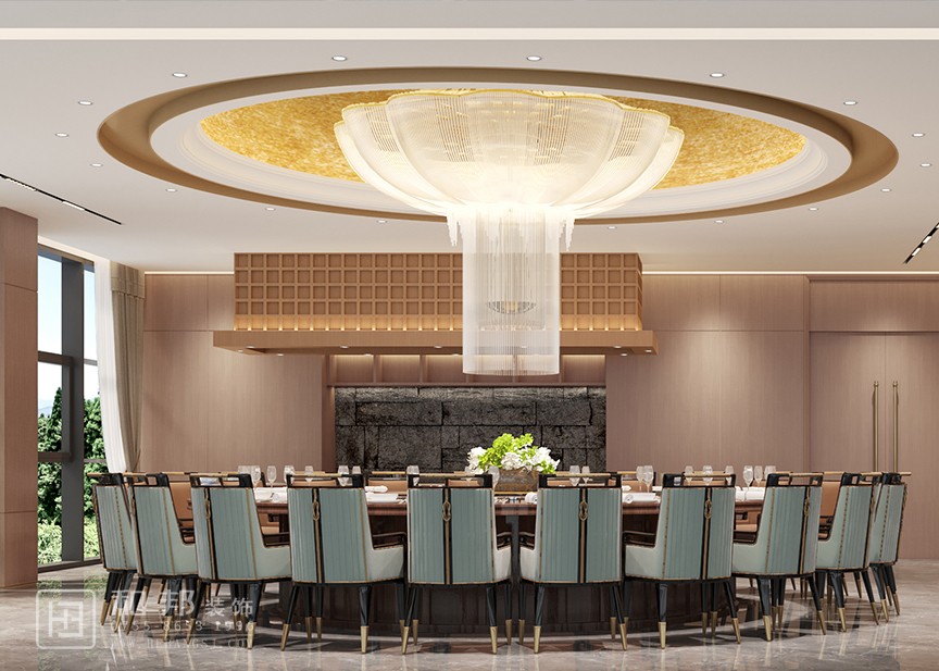 本案為新中式風格高端餐飲場所,以木色為基調,融合傳統與現代元素通過中式符號(山水掛畫、博古架 )與現代材質、燈光結合,打造出兼具文化底蘊與舒適體驗的宴請空間,適配商務、高端聚會場景。